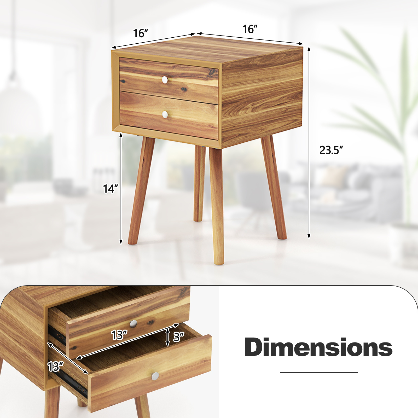 COSTWAY 2-Drawer Nightstand with -Tip, Compact Bedside Table with Spacious Storage, Wood & MDF\u002FRubberwood, Easy Assembly, Heavy-Duty Tabletop (165 Capacity) for Small Spaces, Bedroom or Living Room